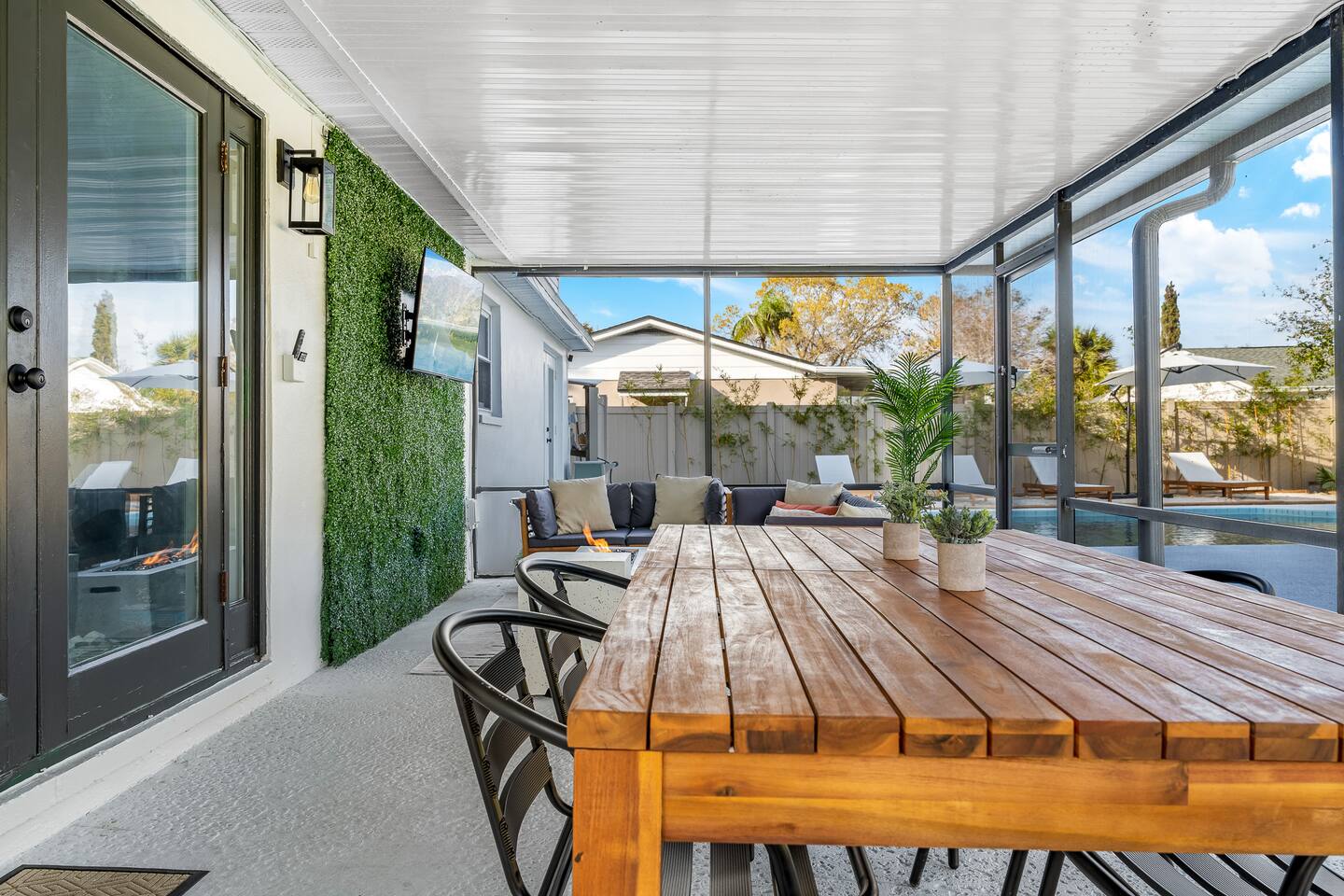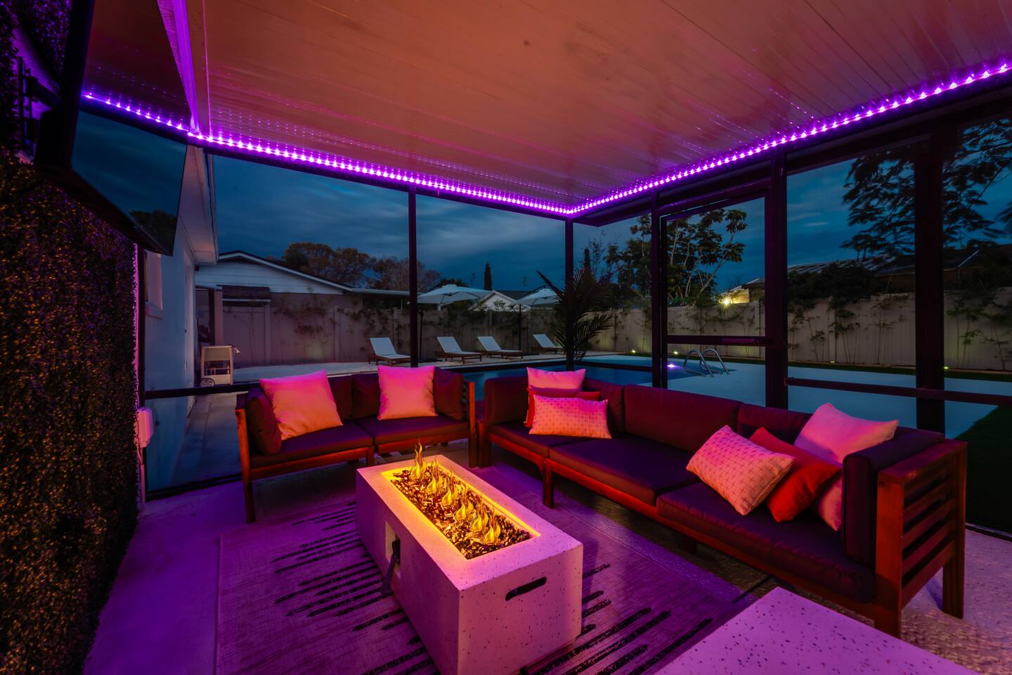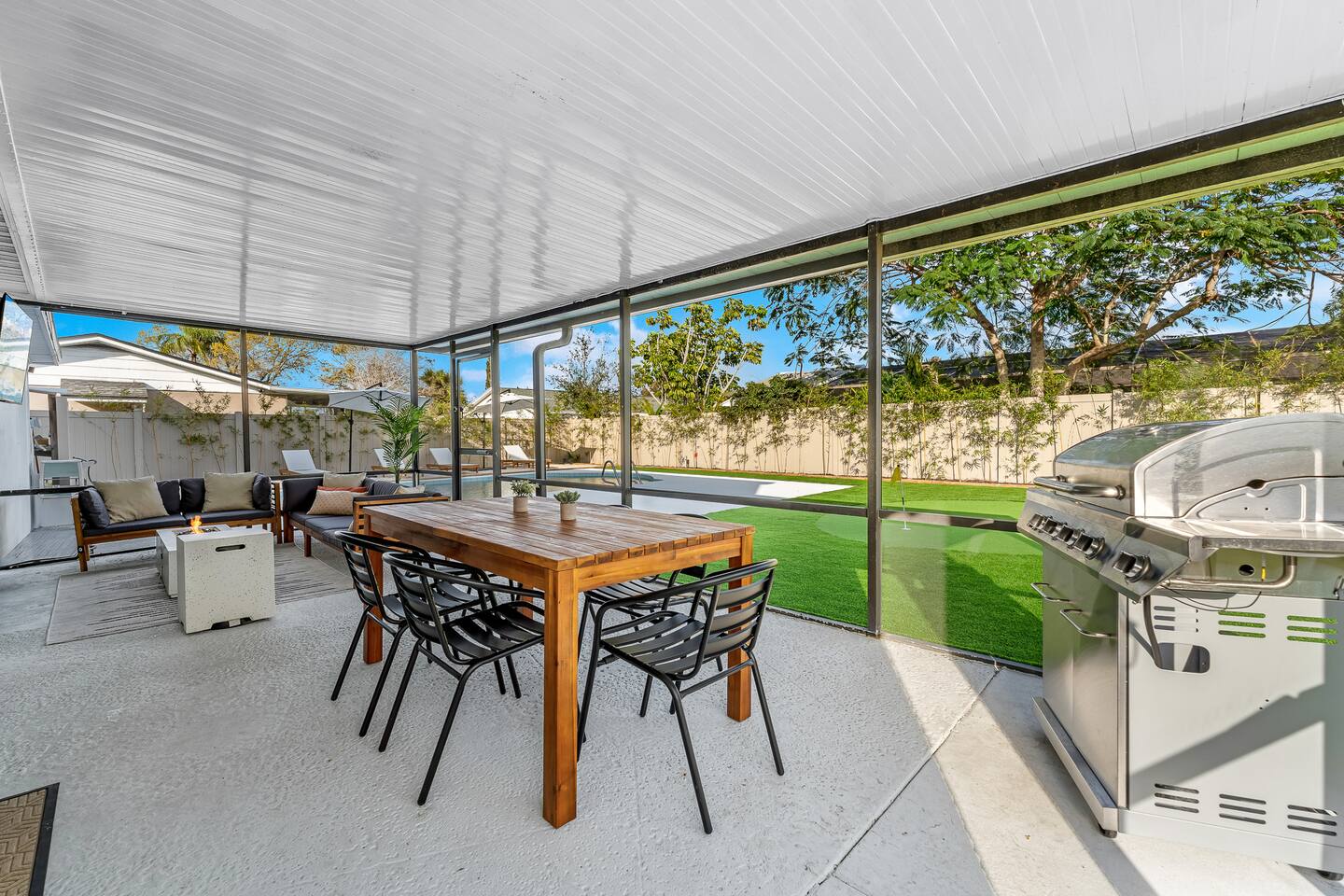 NEARBY: ➢ Tampa Airport (5.2 miles) ➢ Rocky Point Golf Course (1.7 miles) ➢ Ben T Davis Beach (5.2 miles) ➢ Countryway Golf Club (5.4 miles) ➢ International Plaza (5.7 miles) ➢ Raymond James Stadium (7.0 miles) ➢ Hyde Park Village / SoHo (8.7 miles) ➢ Tampa Zoo (8.9 miles) ➢ Downtown Tampa / Riverwalk (10.2 miles) ➢ Tampa Convention Center (10.6 miles) ➢ Amalie Arena (10.6 miles) ➢ Armature Works (10.7 miles) ➢ Sparkman Wharf (11.2 miles) ➢ The Florida Aquarium (11.3 miles) ➢ Ybor City (13.4 miles) ➢ Hard Rock Hotel & Casino (16.9 miles) ➢ Busch Gardens (18.0 miles) ➢ Clearwater Beach (21.2 miles) ➢ St. Petersburg (23.5 miles) ◀︎ ABOUT THE SPACE ▶︎ Step into a bright, open main living room designed for a fun and relaxing stay. The fully equipped kitchen features stainless steel appliances and everything you need for group meals, morning coffee, and late-night snacks. Dine indoors or take it outside to the screened lanai for alfresco meals under the Florida sky. Step through the French doors into your private backyard retreat: ✔ Heated pool ✔ Mini golf putting green ✔ Screened-in lanai with sectional seating ✔ Outdoor TV + firepit for movie nights ✔ Hammock + chaise loungers ✔ Grill for group cookouts Whether you're swimming, putting, roasting s’mores, or watching the game outside — this space was built for memory-making. ◀︎ SLEEPING ARRANGEMENTS ▶︎ BEDROOM #1 –- King Bed w/ ensuite bathroom BEDROOM #2 –- King Bed BEDROOM #3 –- Queen Bed + Foldable Twin Bed available as needed BEDROOM #4 –- 4 Queen Beds (2 Queen/Queen Bunk Beds) All Bedrooms Include: ✓ blackout shades ✓ memory foam mattresses ✓ smart tvs Bathrooms ✓ towels ✓ soap ✓ shampoo and conditioner Kitchen ✓ microwave, stove, oven ✓ toaster ✓ coffee machine ✓ electric kettle ✓ cookware ✓ dinnerware ✓ drinkware ✓ grill set Laundry Room ✓ washer ✓ dryer ✓ laundry detergent If you're looking for the ideal place to call home (away from home) just minutes from several main attractions and activities, look no further for your next stay in beautiful Tampa. We can’t wait to welcome you! * All TVs are smart TVs for online streaming with your personal account log in. * For safety, decorative fireplace does not emit heat. * Pack n play, high chair, child utensils/plates/cups, and toddler toys available upon request. * Please supervise children at all times, especially when outside around and near pool. Other things to note: We are fully compliant with Hillsborough County regulations and will provide any required documentation prior to check-in.