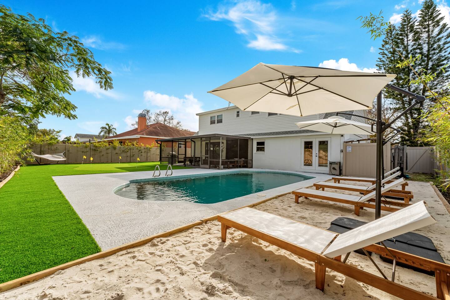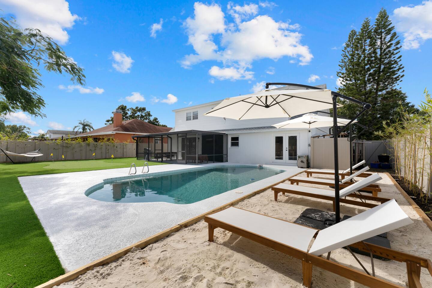 Your crew deserves more than a hotel. Welcome to Endless Summer Escape: Tampa's ultimate group retreat with a private heated pool, putting green, outdoor firepit, and room for 15. Minutes from the airport, beaches, and downtown. Designed for large families, friend groups, and multi-generational trips, Endless Summer Escape features two indoor living areas, a fully equipped kitchen, and a bunk bed room with four queen beds. Show up, relax, and let vacation mode take over!