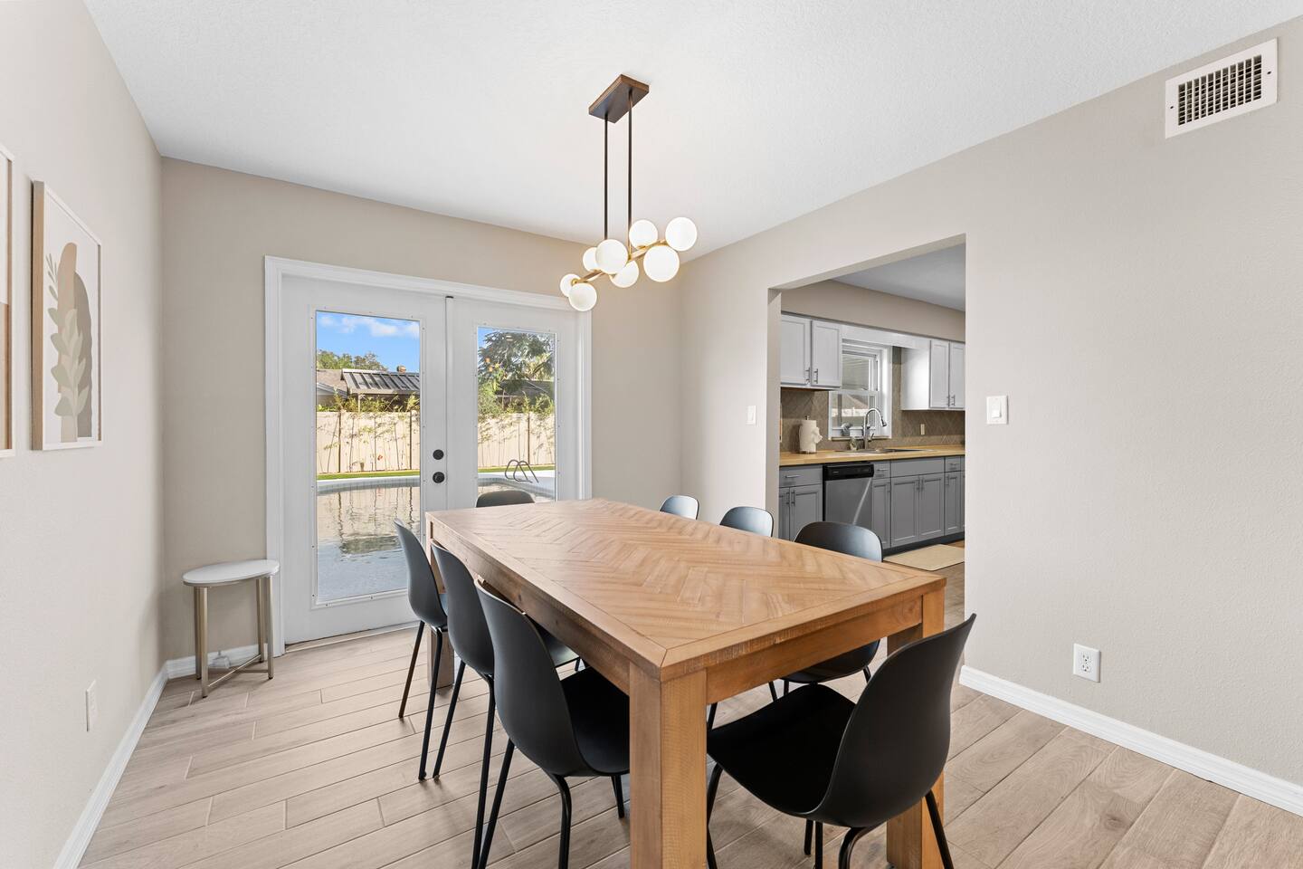 As this is a quiet, family friendly neighborhood we ask that guests keep noise levels to a minimum especially after 9:30PM while outside. Decibel monitors are in place for monitoring purposes. Please also note that for security, there is a Ring camera set up at the front door as well as a camera in the backyard. We have regular pool, lawn maintenance, and pest control scheduled on an ongoing basis, which may occur during any scheduled stay.